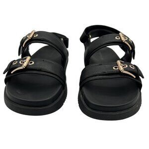 • Black Sprintt Sandals Gold Buckle Chunky Comfort Footbed