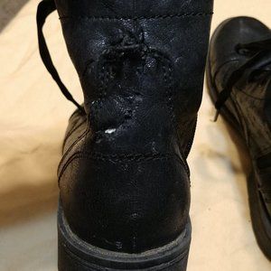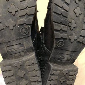 Madden girl, black ankle boots. Has a small hole in the back from my puppy but other than that good condition.