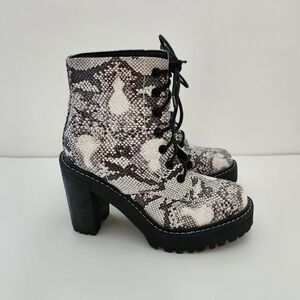 Madden Girl Archiee snake skin print chunky heel lace up boot womens size 6.5