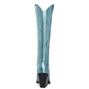 Western-inspired stitching adds interest to a sleek silhouette in the Arizona pull-on cowboy boots from Madden Girl.
