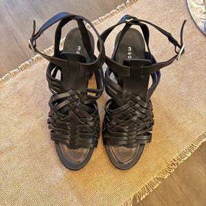 Very cute and comfy Madden Girl block heels with huarache or gladiator type strap details and ankle buckle. Very good used condition. Size 9. Priced to sell!