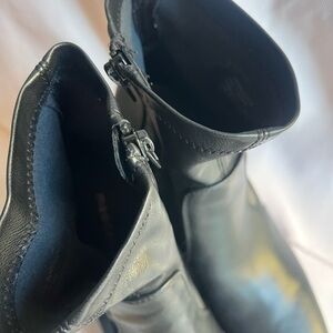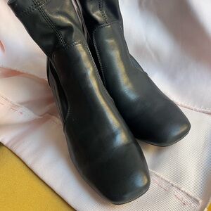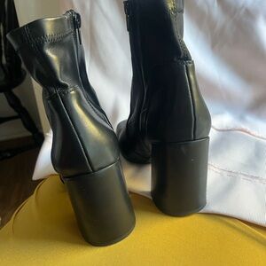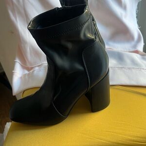 Step into timeless elegance with Madden Girl's black heeled boots, featuring a sleek western-inspired design. These ankle-height boots boast a smooth leather finish with a subtle sheen and a comfortable 2-3 inch angled heel. Perfect for versatile styling, they offer a pull-on design with a slightly slouched shaft for added character.