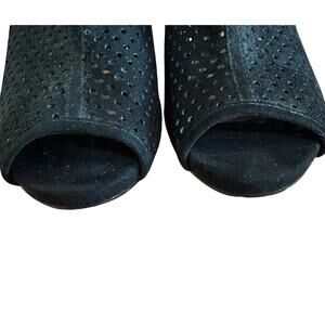 Madden Girl Black Perforated Peep Toe Booties Faux Leather Zip Back 8M