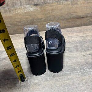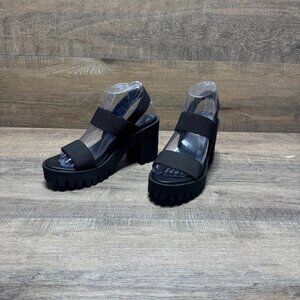 The Madden Girl Black Platform Sandals are a stylish choice for women in size 8. With a high block heel and strappy design, these sandals are perfect for adding a touch of glam to any outfit. The elastic strap closure and comfortable PU lining ensure a secure fit and all-day wear. Made with a durable textile upper and featuring an open toe and lug sole, these sandals are both fashionable and practical for any casual or dressy ensemble.