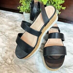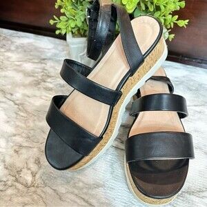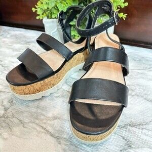 Madden Girl Black Salina Cork Look Wedge FlatForm Sporty Sandal Sz 9