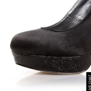 There's no place like . . . out on the town in the rockin' new Madden Girl Toriie Black Satin Glitter Pumps! Sensual black satin upper has a rounded toe and is paired with glitter accents for an unbelievable experience. A be-glittered 5" stiletto heel (including rubber tip) matches the glimmering 1" toe platform. Well cushioned insole. Rubberized sole has non-skid markings. Fit is true to size. All quality man made materials are vegan friendly. Last 3 Pictures are of actual shoe. Only worn once