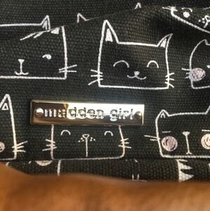 Madden Girl Black White Cat Backpack Leather Bottom Tassel Zipper Bookbag EUC