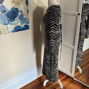 New with tags, Madden Girl black and cream zebra print knit midi dress. This body-con, slim-fit dress has a sexy lace-up back.
