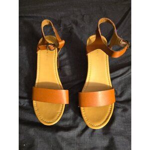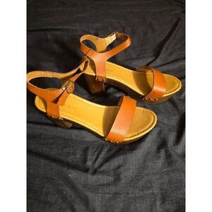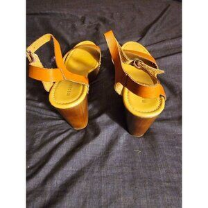 Madden Girl Brown Wooded Heels Sandals Ankle Strap Lifft Style Size 10