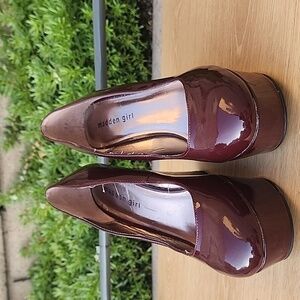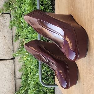 Madden Girl Burgundy Patent Rockonn Platform Wedge Size 9