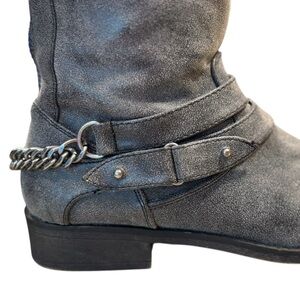 Madden Girl Caanyon Gray Wide Calf Knee High Riding Boots Ankle Chains Size 8.5