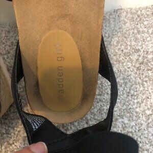 Step into sleek, effortless style with these Madden Girl "Cassie" sandals in classic black. Perfect for dressing up or down, these sandals feature: