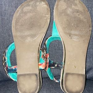 Bright Madden Girl sandals with colorful accents. Features sparkling details.