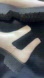 Chic cream booties with bold black panels. Sturdy sole for all-day wear. Stylish and versatile.