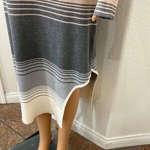 Madden Girl Cream Gray Long Sleeve Dress Scoop Neck Long Sleeve Ribbed Midi New