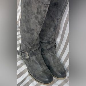 • EUC • Madden Girl Boots - Dark Distressed Grey With Buckle Embellishment, Big Chunky