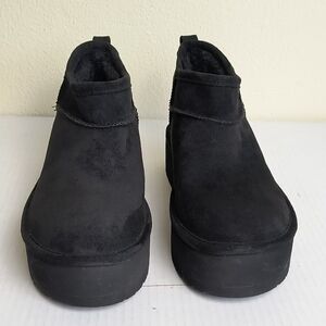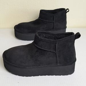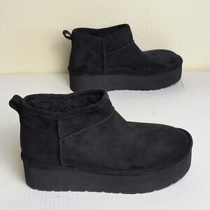 * Madden Girl Embracce Cozy Mini Platform Black Winter Bootie Sleek Design Size 7/7.5