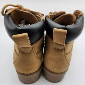 Madden Girl FFLYJ101 Tan Combat Boots Women’s 9 Lace-Up Side Zip Chunky Heel
