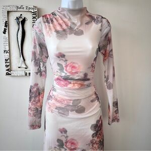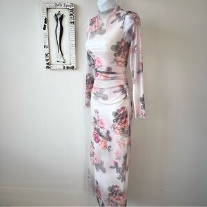 Madden Girl Floral Print Mesh Body-con Long Sleeve Stretch Midi Dress Size S