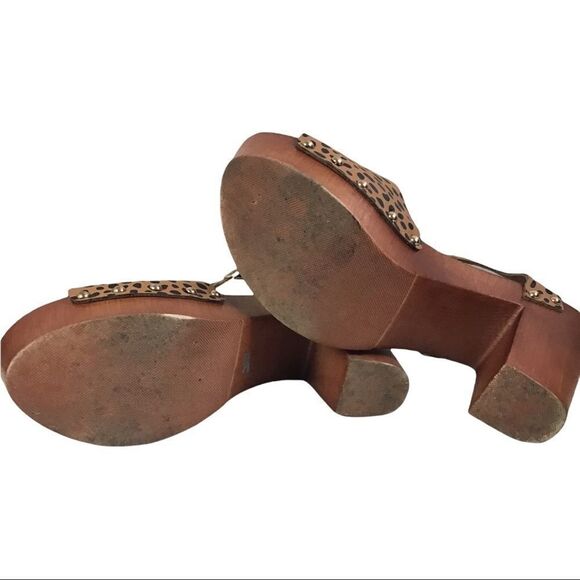 Madden Girl G-Neato Platform Cheetah print platform Sandals. Adjustable Buckle closure at ankle. Single toe strap. Platform toe with a block heel. Studded details.