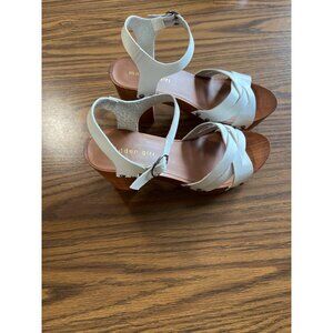 Madden Girl G-Nora white platform sandals size 8.5. Silver tone studs in side, silver tone buckle. Heel measures approximately 3.25”. Platform measures approximately 1.5”. Good pre-owned condition.