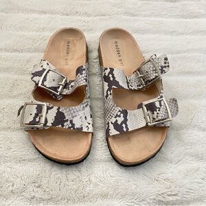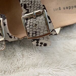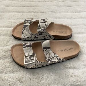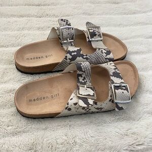 Madden Girl G-Please Snake Print White and Black Buckle Sandals Size 7.5