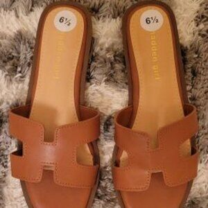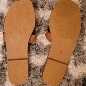 Brown, H band, flat sandals. Soft and comfortable padding. Never worn.