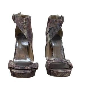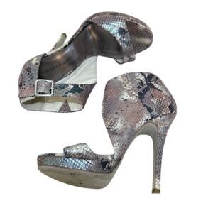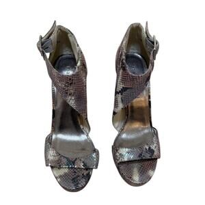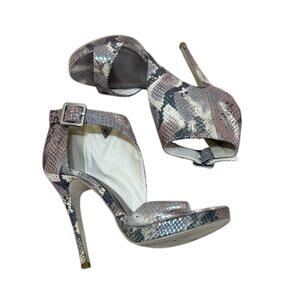 Madden Girl Heel Women 8 Brown Blitzzz Stiletto Buckle Snake Print Metallic Glam