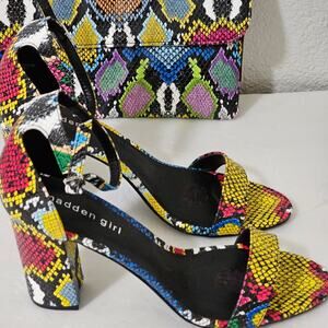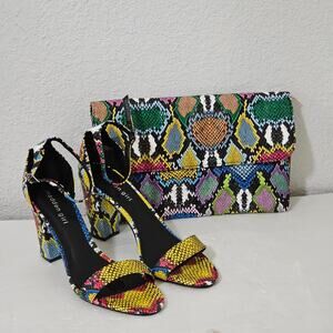 Madden Girl Heels & Purse Snake Print Blue/Multi color Size 9 Block Heel 3.5 in.