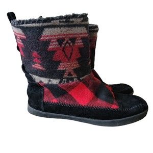 Madden Girl Jackmen Fleece/Faux Fur Lined Boots Plaid Aztec Print Boots Size 9.5