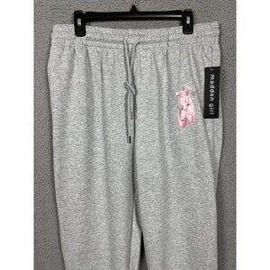 Madden Girl Junior's Gray Fleece Jogger Sweatpants Pink Ballet Design XL NWT's