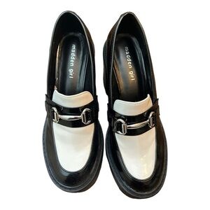 Madden Girl KIIERA in black and white platform loafers