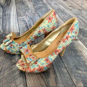 Madden Girl Luckkie Bow Accent Floral Heels Sz 8