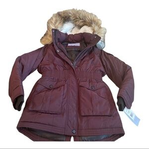 Madden Girl Merlot coat with faux fur hood. NWT. Cinched waist. Deep front pockets. Zip and snap front closures. Snap slit in back. Cozy and cute perfect for the cold months.