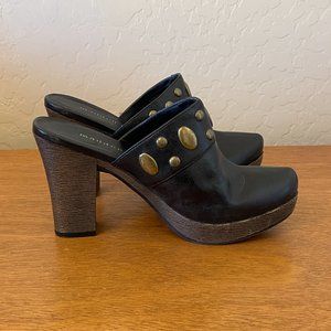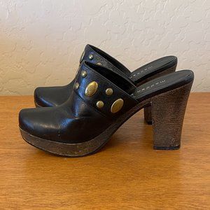 Madden Girl Mules 6 Jaanis Black Gold Stud Platform Heel Mules Clogs Shoes