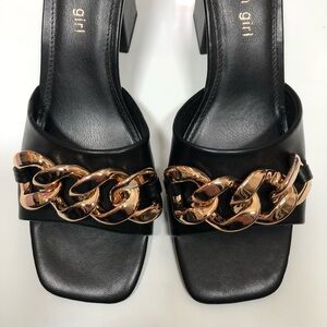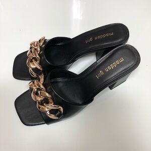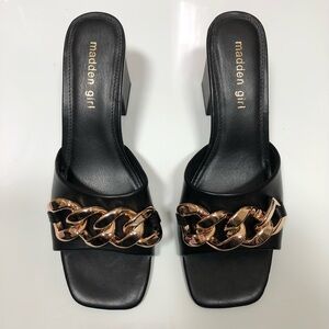 Madden Girl Mules Heeled Sandals Golden chain black Size 8.5