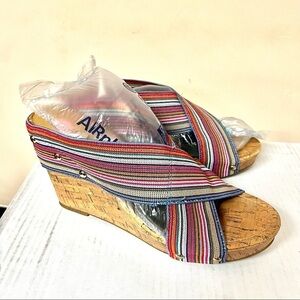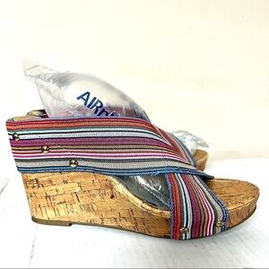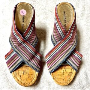 Madden Girl Nautic Bright Multi Striped Wedge Sandals womens size 8.5