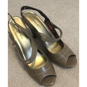 Madden Girl Nemmo Beige Faux Leather Women Heels 9.5M Open Toe Sandals