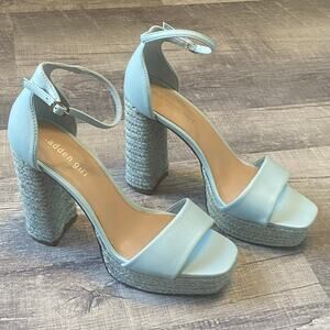 Madden Girl Omega Blue Faux Leather Platform Sandal Ankle Strap Heels NWOT