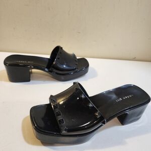 Black block heels slides sandals still in good condition