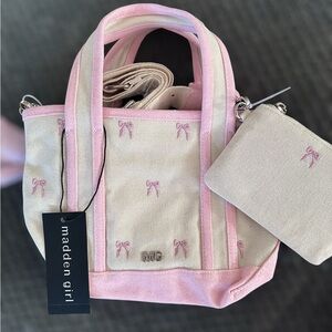 Madden Girl Pink Bow ๐ Tote with Charms NWT
