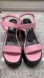 These Madden Girl sandals feature a sleek and minimalist design with soft pink straps, perfect for casual summer outings. The flat black sole provides a stylish contrast, while the ankle strap ensures a secure fit. Crafted with a smooth finish, these sandals offer both comfort and contemporary style.