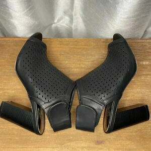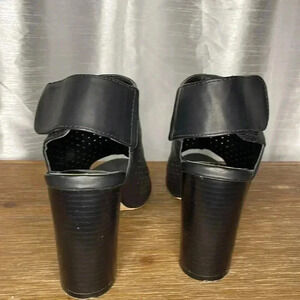 Madden Girl Regarrd Women’s 7 Black Chunky Heel Peep Toe Strappy Shoes
