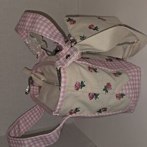 Trim & Accents: The top handles and bag borders are finished with a pink-and-white gingham (checked) pattern.