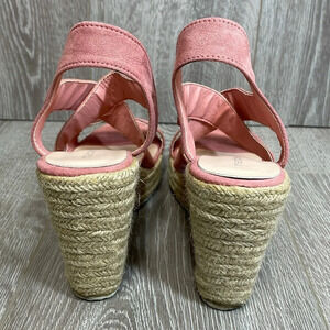 Madden Girl Rosewood Espadrille Platform Wedge Sandals in size 8M. Good preowned condition. Espadrille design, durable traction sole, elastic upper straps, manmade lining, TPR outsole, open toe, slip on, padded footbed, 4.5 inch heel, 1.5 inch platform. Please see photos for approximate measurements and details. Item may show difference in color based upon photography and perception. Photos are part of the description, as everyone’s level of condition may vary. From smoke free and pet free home. All packages are shipped the same or next business day.