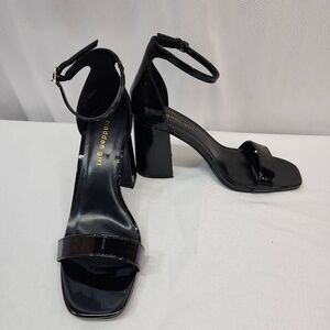 Madden Girl STAR Block Heel Platform Sandal Ankle Strap Square Toe Black Size 8