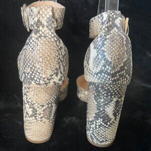 Madden Girl Saaxon Womens Heeled Sandal 7M Snake Print Pointed Toe Block Heel