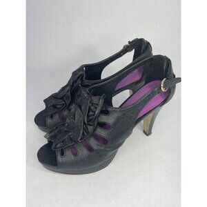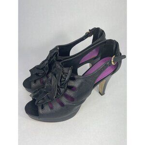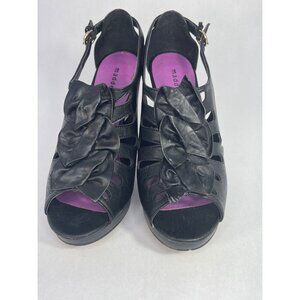 Madden Girl Shoes Women's 8.5 black kobiee ruffle cone heel belt buckle