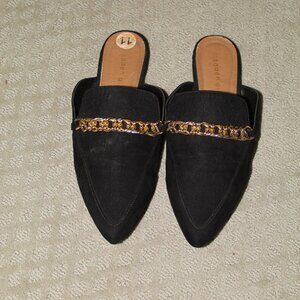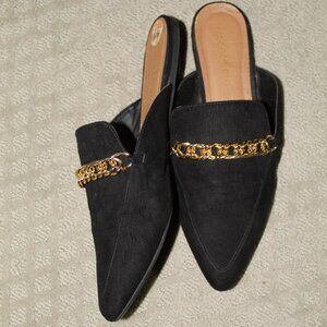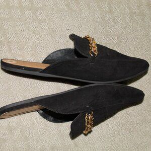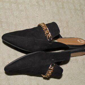 Madden Girl Size 11 Black Suede with Gold Chain Flat Pointed Toe Mules