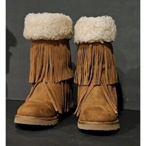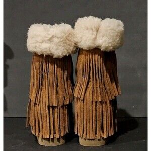 Condition: Excellent pre-owned condition with minimal wear. Please review all 14 photos for exact details of the sole, fringe, and lining.